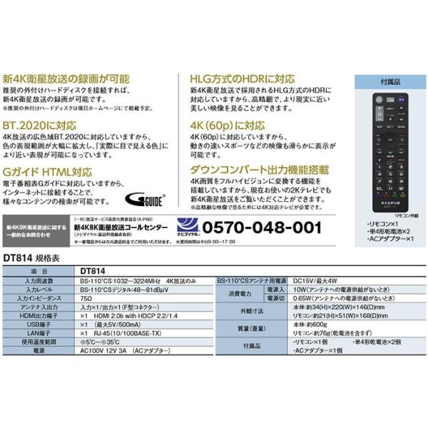 マスプロ電工 4kチューナー dt814 4k対応テレビで新4k衛星放送を視聴できる 卸売り