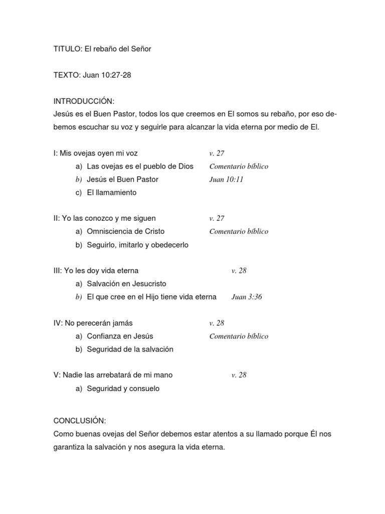 Bosquejo Juan 10 27-28 | Oveja | Jesús